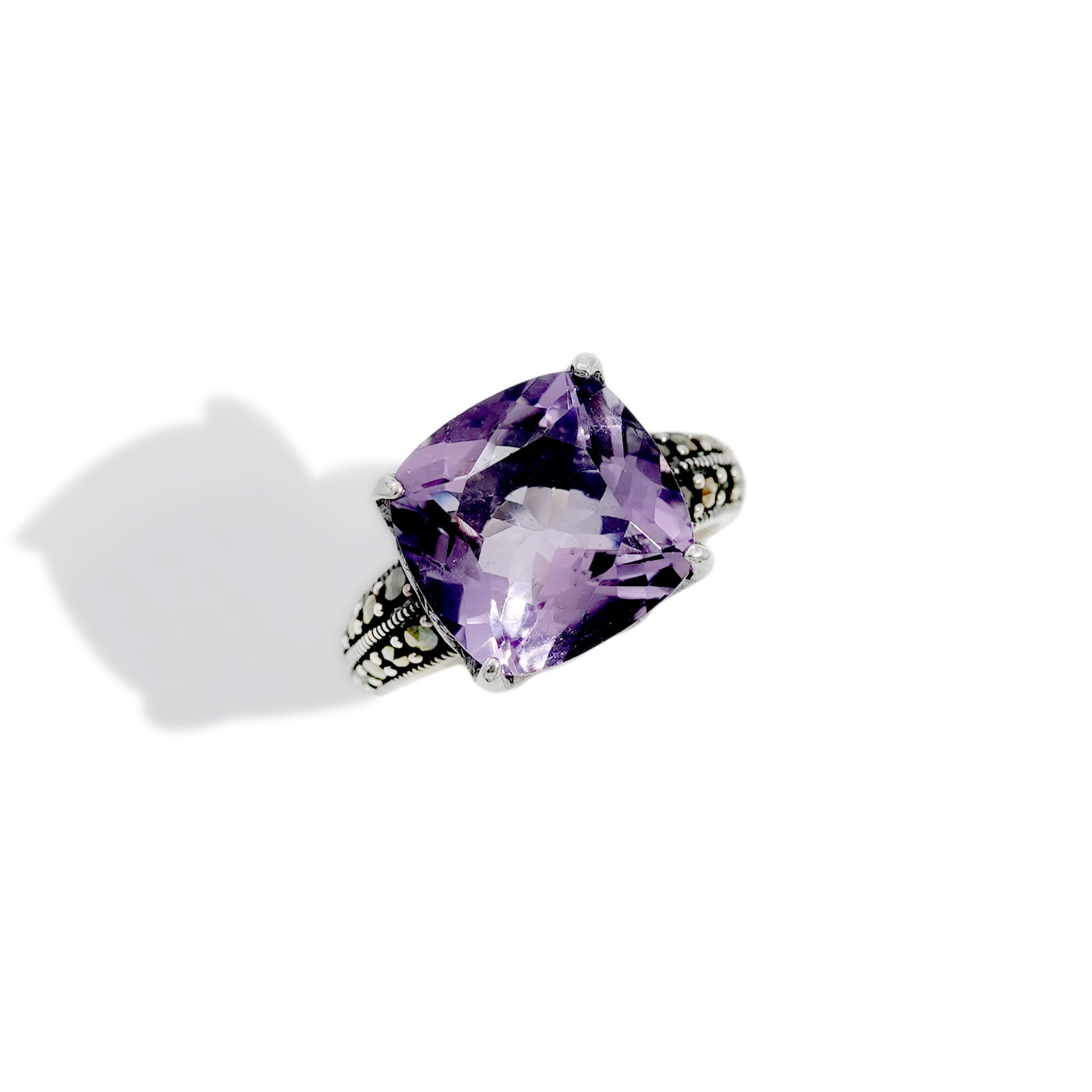 STONE : 12mm SQUARE AMETHYST AND 1mm ROUND MARCASITE